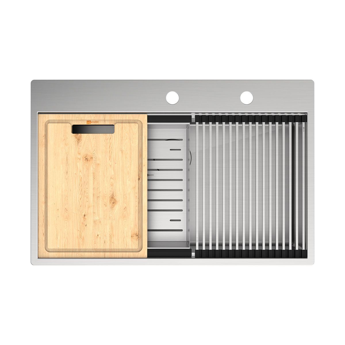 комплект креплений для всех видов монтажа, сливная арматура с выпуском 3 ½ (D-90мм), сифон с возможностью подключения посудомоечной и стиральной машины, донный клапан, перелив, декоративный элемент для выпуска- (по кол-ву чаш в модели), аКсЕссУаРЫ: РОЛЛ-МаТ, КОЛандЕР, РаЗдЕЛОчнаЯ дОсКа в комплекте, Полотенце 40*40 см из микрофибры с металлическим подвесом, Технический паспорт с инструкцией по монтажу и гарантийным талоном