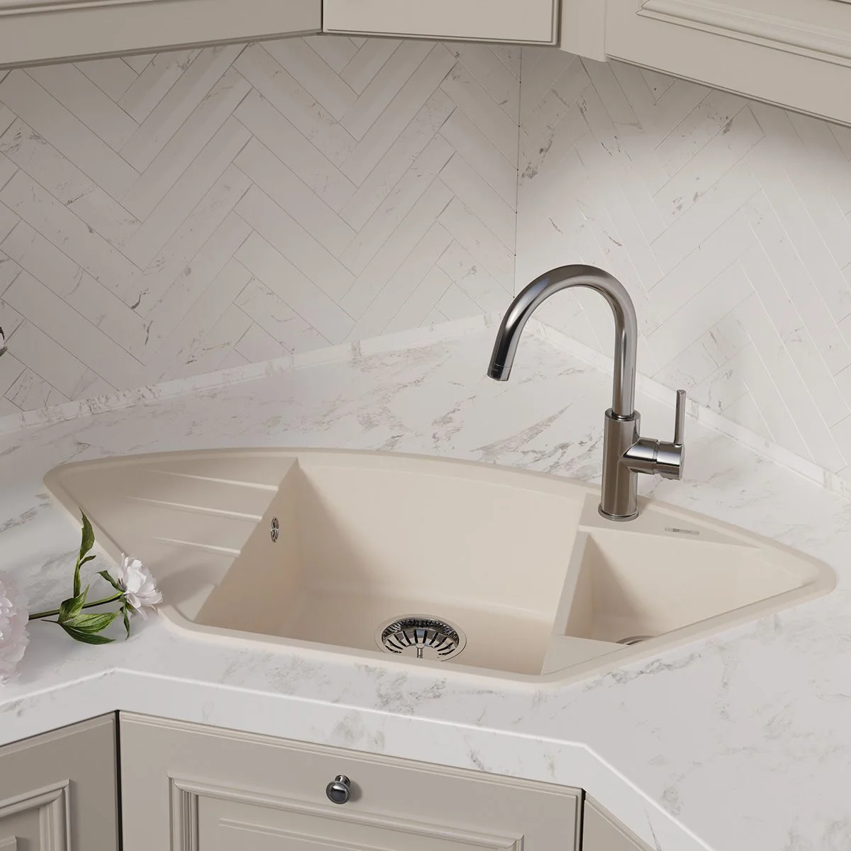 Основу материала моек из композитного материала (Кварцгранит) LEMARK составляют частицы кварца и гранита- 80% и полиэфирная смола- 20%.