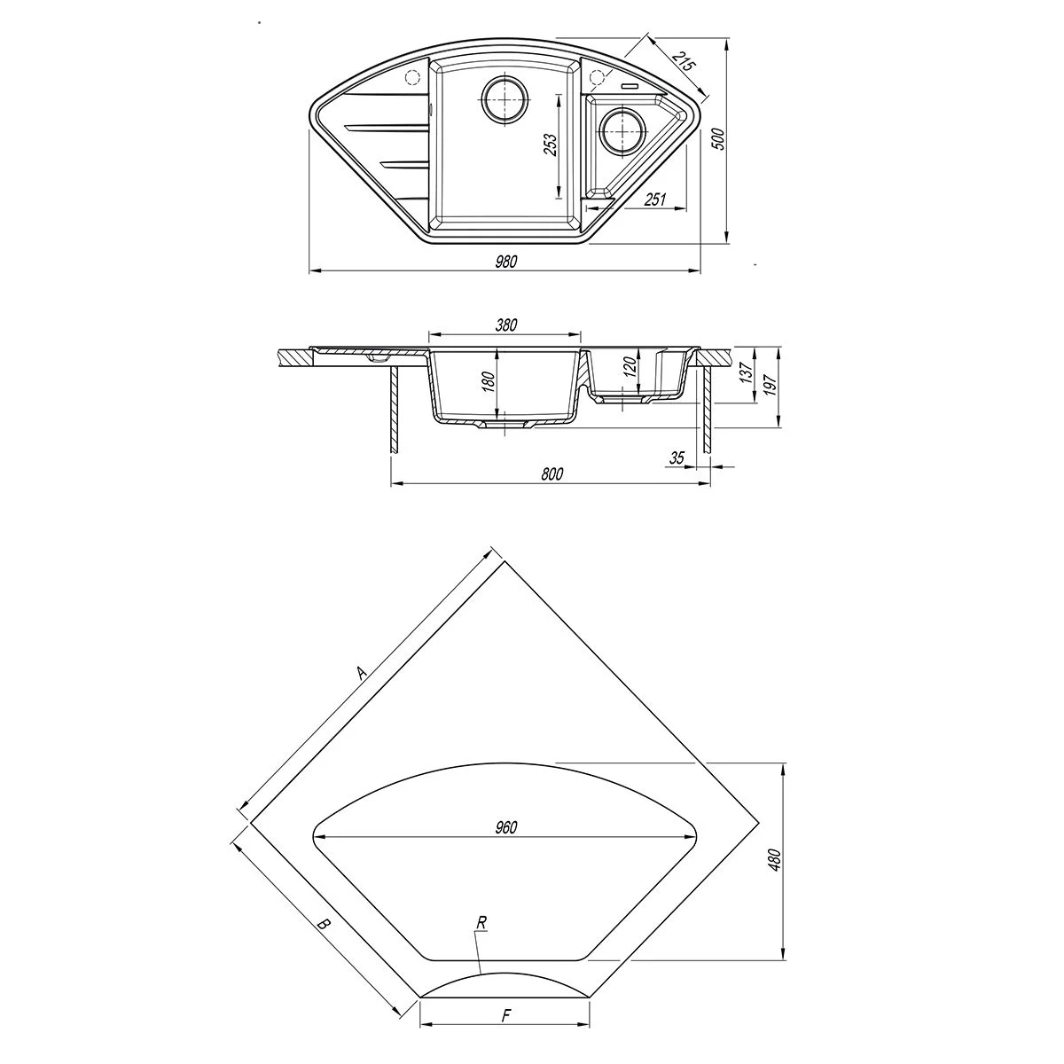 - Глубина чаш: 180 мм/120 мм