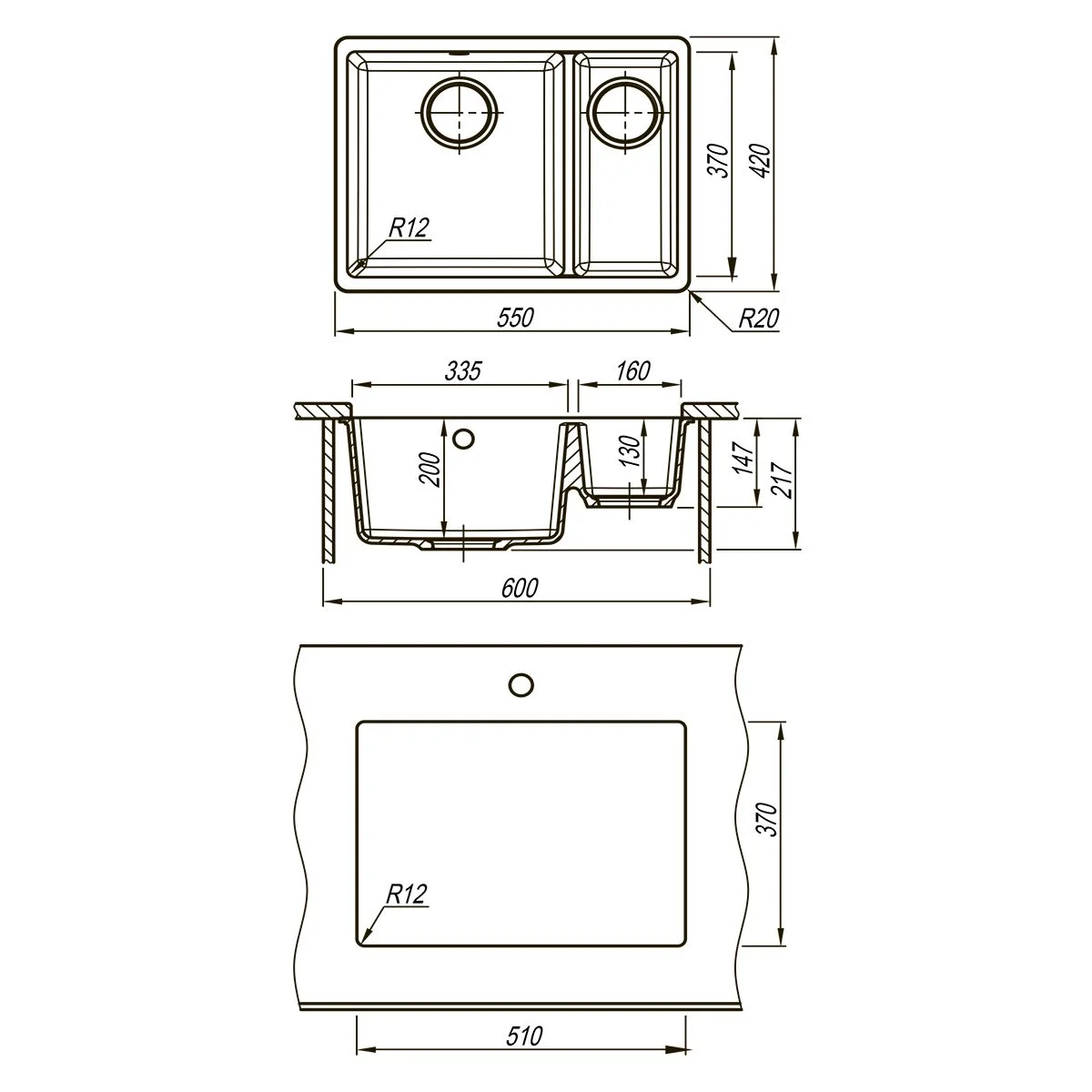 - Глубина чаши: 200 мм