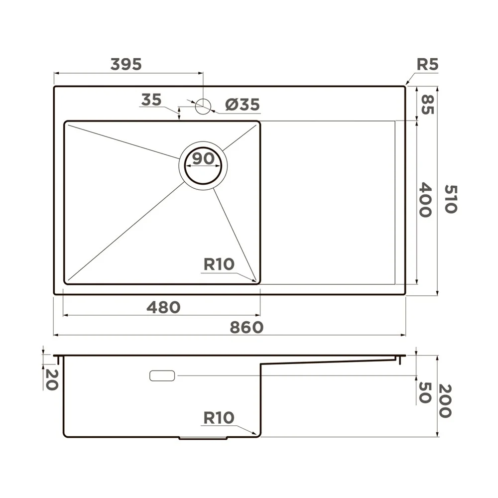 Кухонная мойка Omoikiri Akisame 86-IN-L Side нержавеющая сталь/нержавеющая сталь 4997031