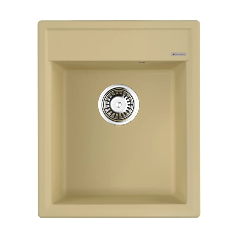 • Кухонная мойка OMOIKIRI изготовлена из матриала «Artgranit», технология производства которого заключается в том, что частицы кварца, гранита и прочного связующего полимера нового поколения, свойства которого похожи на акриловую смолу, соединяют вместе и помещают в форму. После застывания получается готовая мойка;