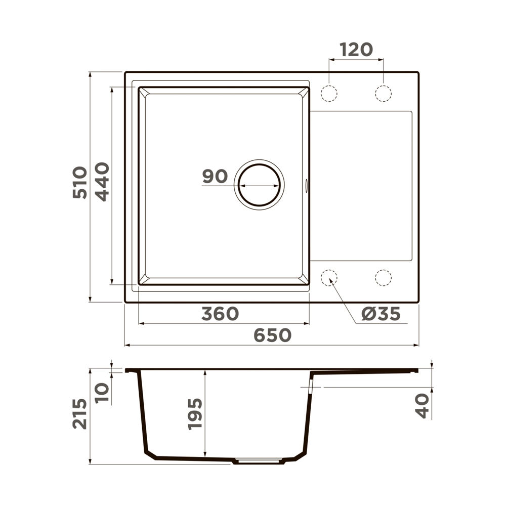 • Помимо гранита, в состав материала входит молотый кварц мельчайших размеров, которому характерны непревзойденная прочность и устойчивость к природным и химическим воздействиям. Свойства данного компонента вместе с долговечностью гранита обеспечивают мойке прочность и делают её устойчивой к любым механическим повреждениям: деформациям, сколам;