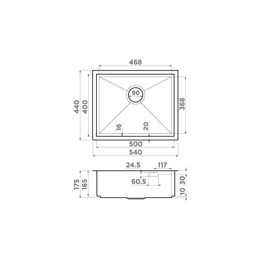 • Kasen 54-16 – увеличенная мойка, которая подходит для изделий с материалом, толщиной 12 мм (компакт, акриловый камень весь, кварц, керамика);