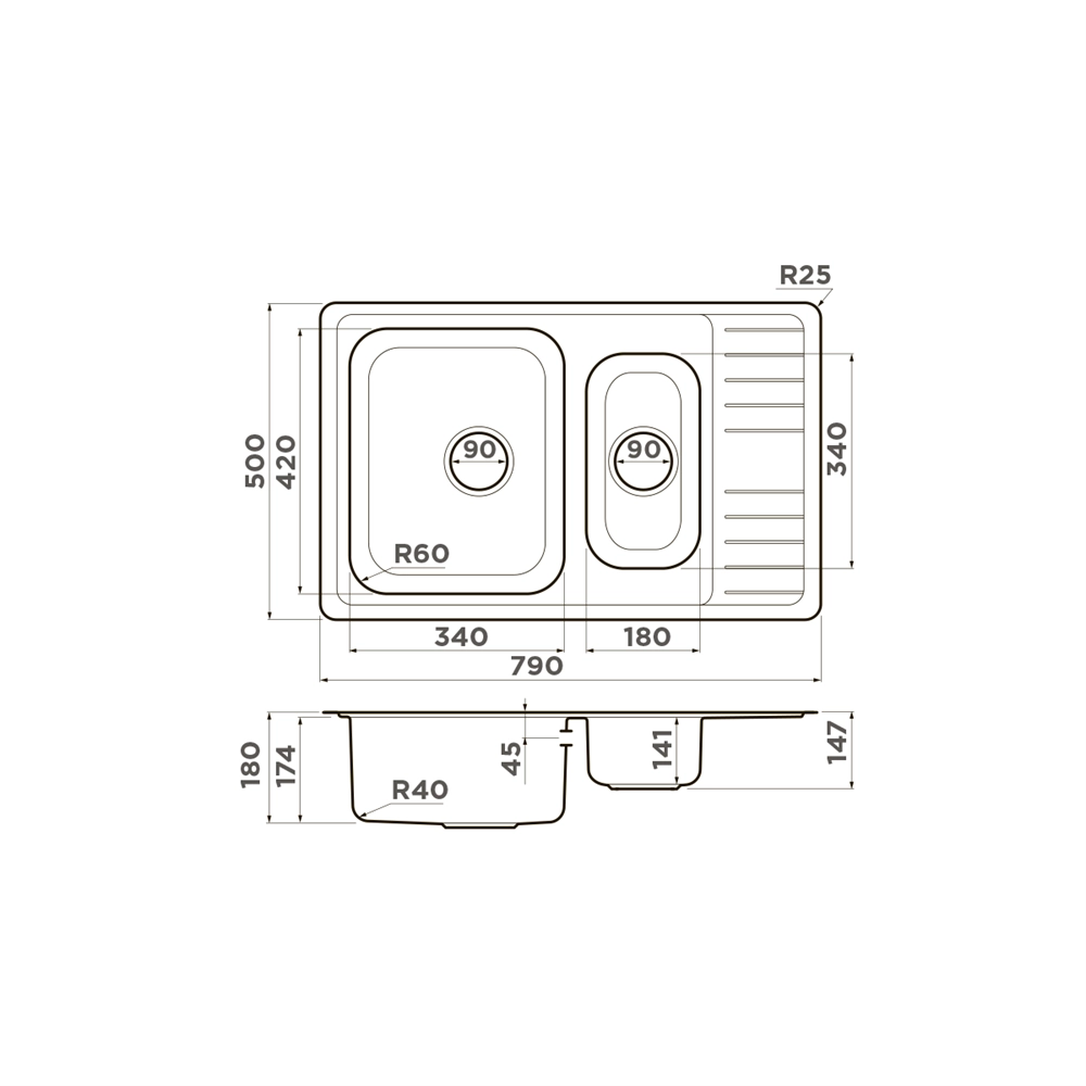 Кухонная мойка Omoikiri Sagami 79-2-IN нерж.сталь/нержавеющая сталь 4993733