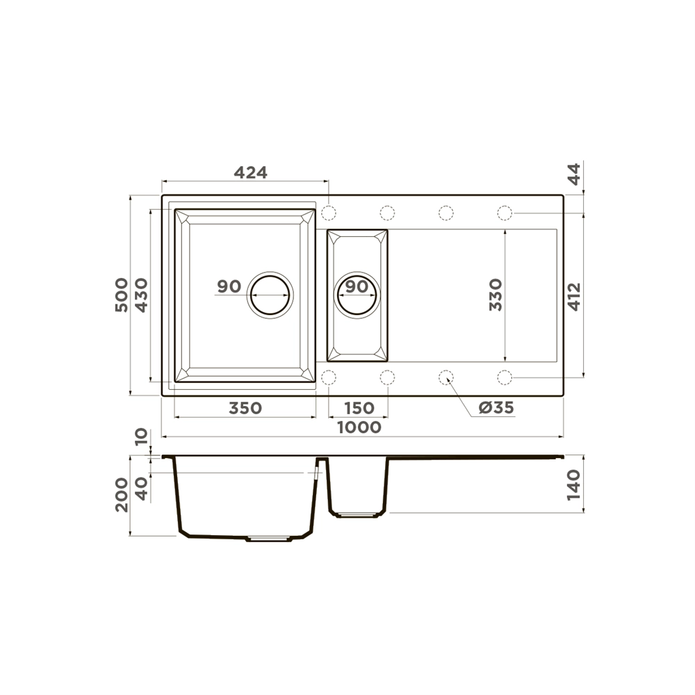 • Мойки из «Tetogranit» устойчивы к механическим повреждениям. Входящий в состав кварцевый песок представляет собой кристаллическую структуру, что придаёт мойке устойчивость к воздействию различных кислот и щелочей, гарантируя неизменность внешнего вида мойки;