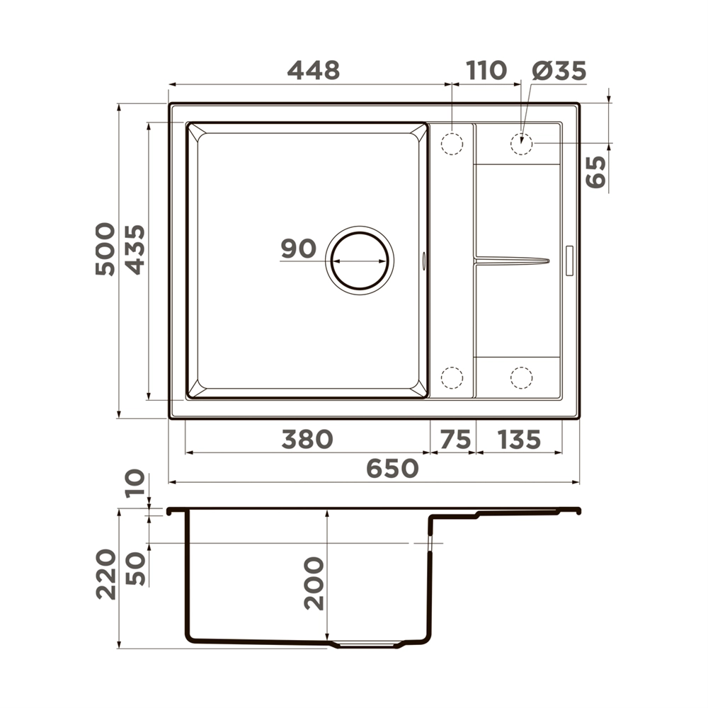 • Мойки из «Tetogranit» устойчивы к механическим повреждениям. Входящий в состав кварцевый песок представляет собой кристаллическую структуру, что придаёт мойке устойчивость к воздействию различных кислот и щелочей, гарантируя неизменность внешнего вида мойки;