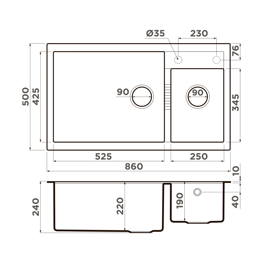 • Кухонная мойка OMOIKIRI изготовлена из матриала «Tetogranit», технология производства которого заключается в том, что частицы гранита, кварцевый песок и акриловую смолу объединяют в пресс-форме и обжигают при высокой температуре. Далее, для обеззараживания поверхности добавляют ионы серебра и волокна теторона (Tetoron), благодаря которым, на всём протяжении эксплуатации моек не происходит развитие бактерий, плесени и грибка. Также, при изготовлении моек из «Tetogranit» применяется специальный способ окрашивания частиц гранита: на их поверхность при температуре выше 700°С наносится пигмент, который за счет высокотемпературного нанесения проникает во внутренние структуры камня; • Мойки из «Tetogranit» устойчивы к механическим повреждениям. Входящий в состав кварцевый песок представляет собой кристаллическую структуру, что придаёт мойке устойчивость к воздействию различных кислот и щелочей, гарантируя неизменность внешнего вида мойки; • За счет окрашивания каждой частицы гранитного материала при помощи специ