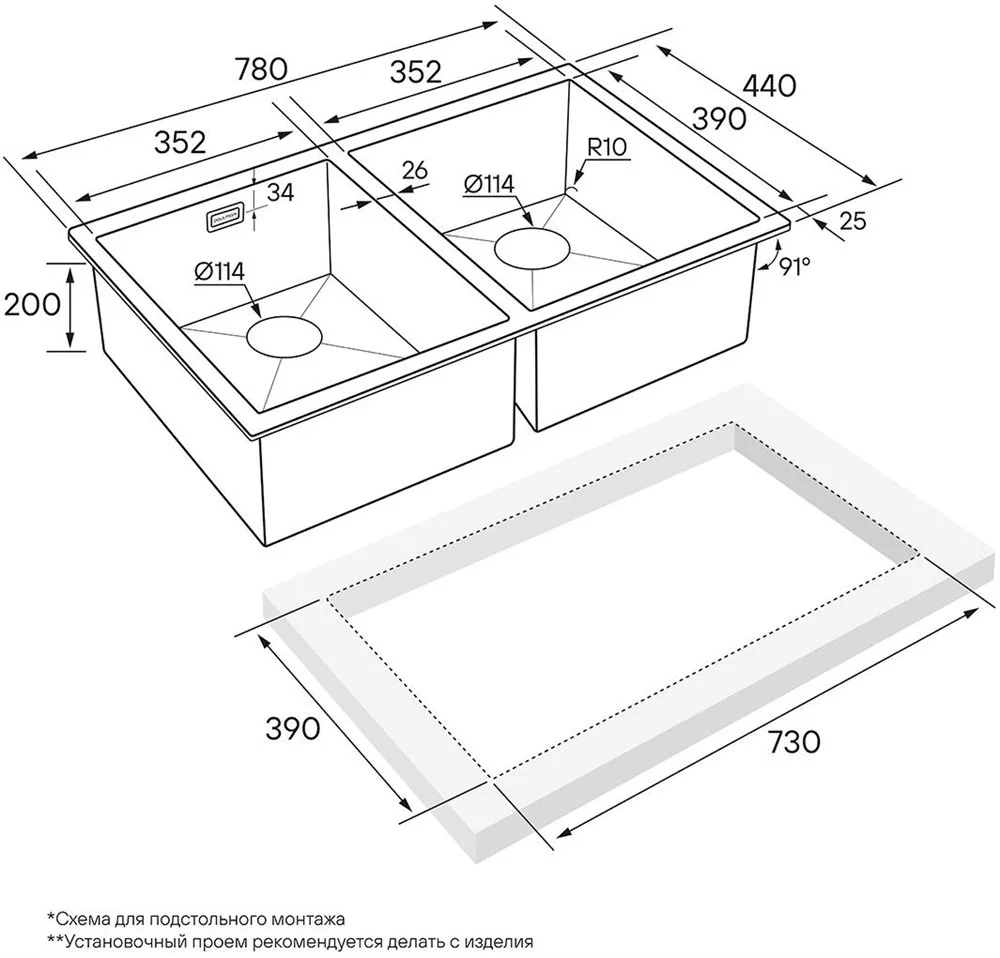 Кухонная мойка Paulmark AISI304 DOPPLET PM507844-BS брашированная нерж.сталь 780х440мм
