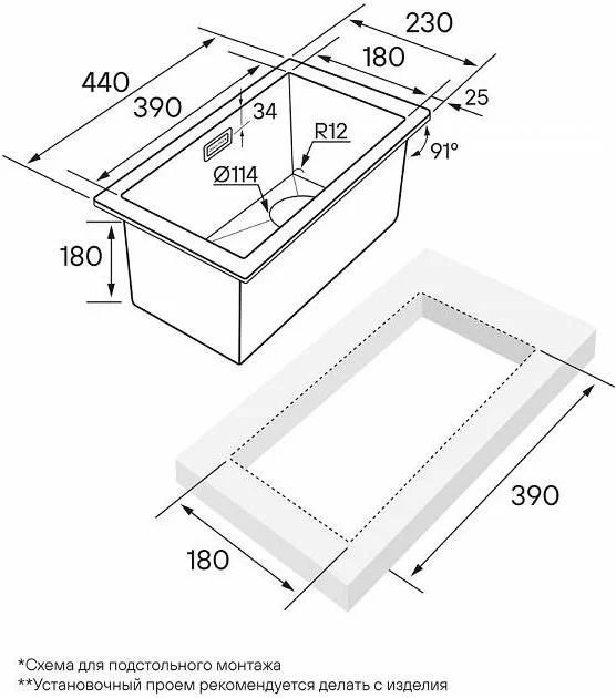 Кухонная мойка Paulmark AISI304 KLEIN PM202344-BS брашированная нерж.сталь 230х440мм