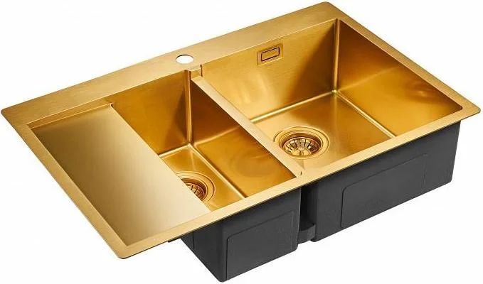 Кухонная мойка Paulmark AISI304 UNION PM537851-BGR брашированное золото правая 780х510мм