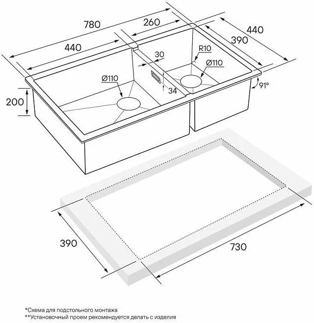 Кухонная мойка Paulmark AXEL PM227844-BS брашированная нержавеющая сталь 780х440мм