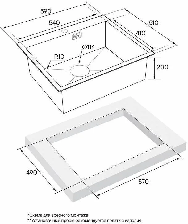 Кухонная мойка Paulmark BRIM PM215951-GM вороненая сталь 590х510мм