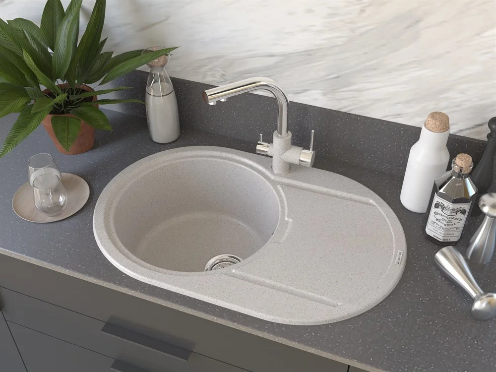 Кварцевая мойка для кухни Paulmark. Высокая прочность, устойчивость к царапинам, гладкая поверхность без пор, долговечность, безопасность и экологичность.