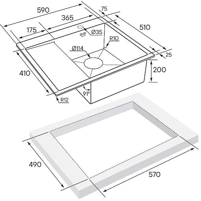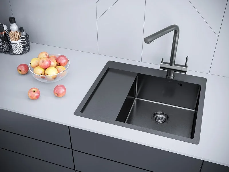 Кухонная мойка Paulmark FLANK PM225951-GMR вороненая сталь правая 590х510мм