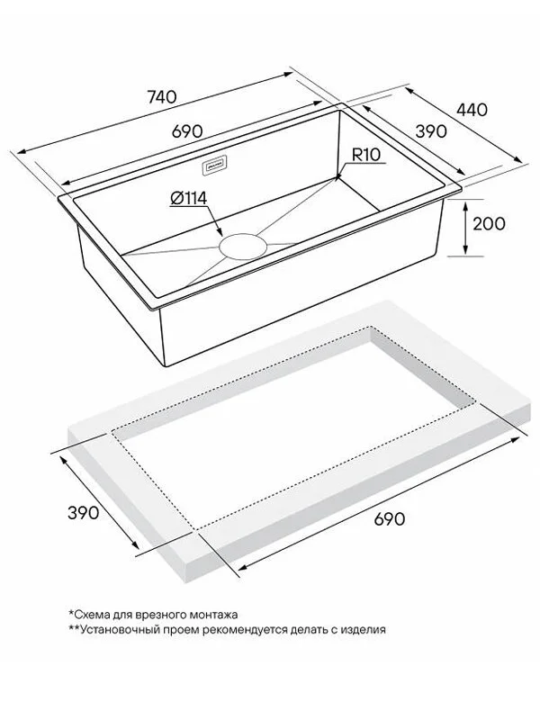 Комплект крепежей для врезного монтажа, Комплект для подстольного монтажа, Отводная арматура (слив-перелив), Сифон бутылочного типа с подключением посудомоечной машины (ПММ).
