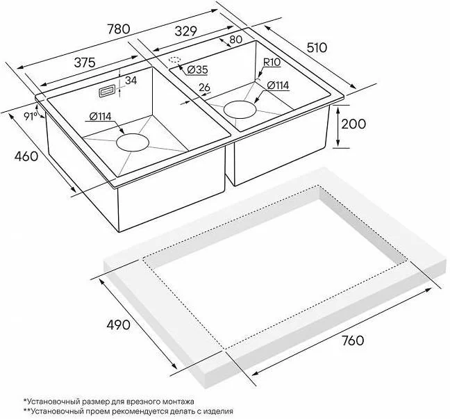 Кухонная мойка Paulmark HELFER PM237851-GM вороненая сталь 780х510мм