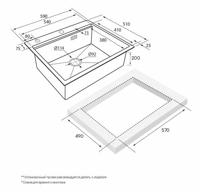 Ролл-мат «PRO», Комплект крепежа для врезного монтажа, Отводная арматура (слив-перелив), Сифон бутылочного типа с подключением посудомоечной машины (ПММ).