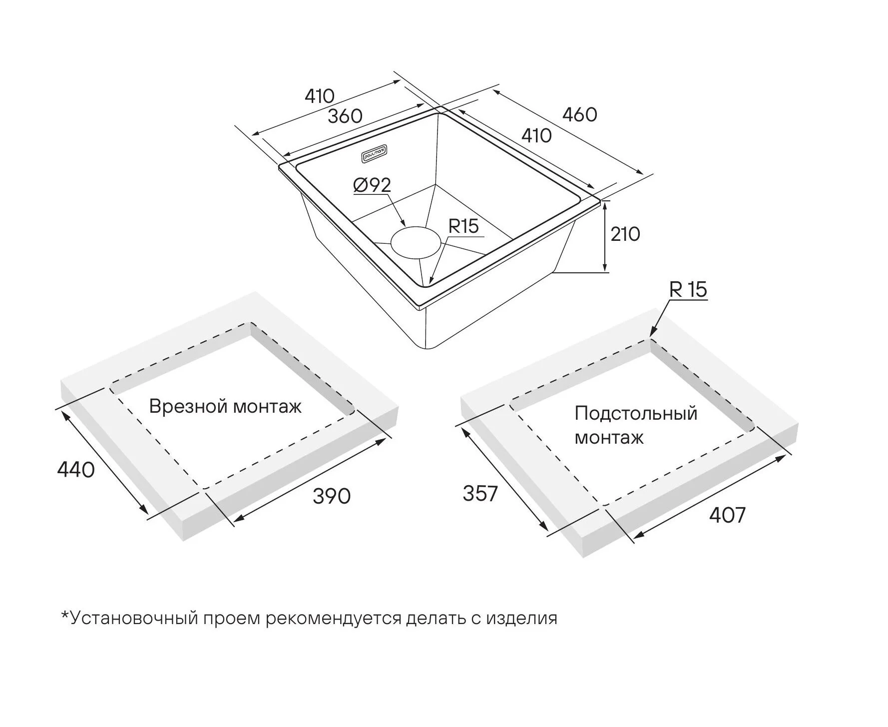 Декоративная накладка на слив в цвете брашированная нержавеющая сталь, Комплект крепежа для врезного и подстольного монтажа, Отводная арматура (слив-перелив), S-образный телескопический сифон с подключением посудомоечной машины (ПММ), Декоративная накладка на перелив.