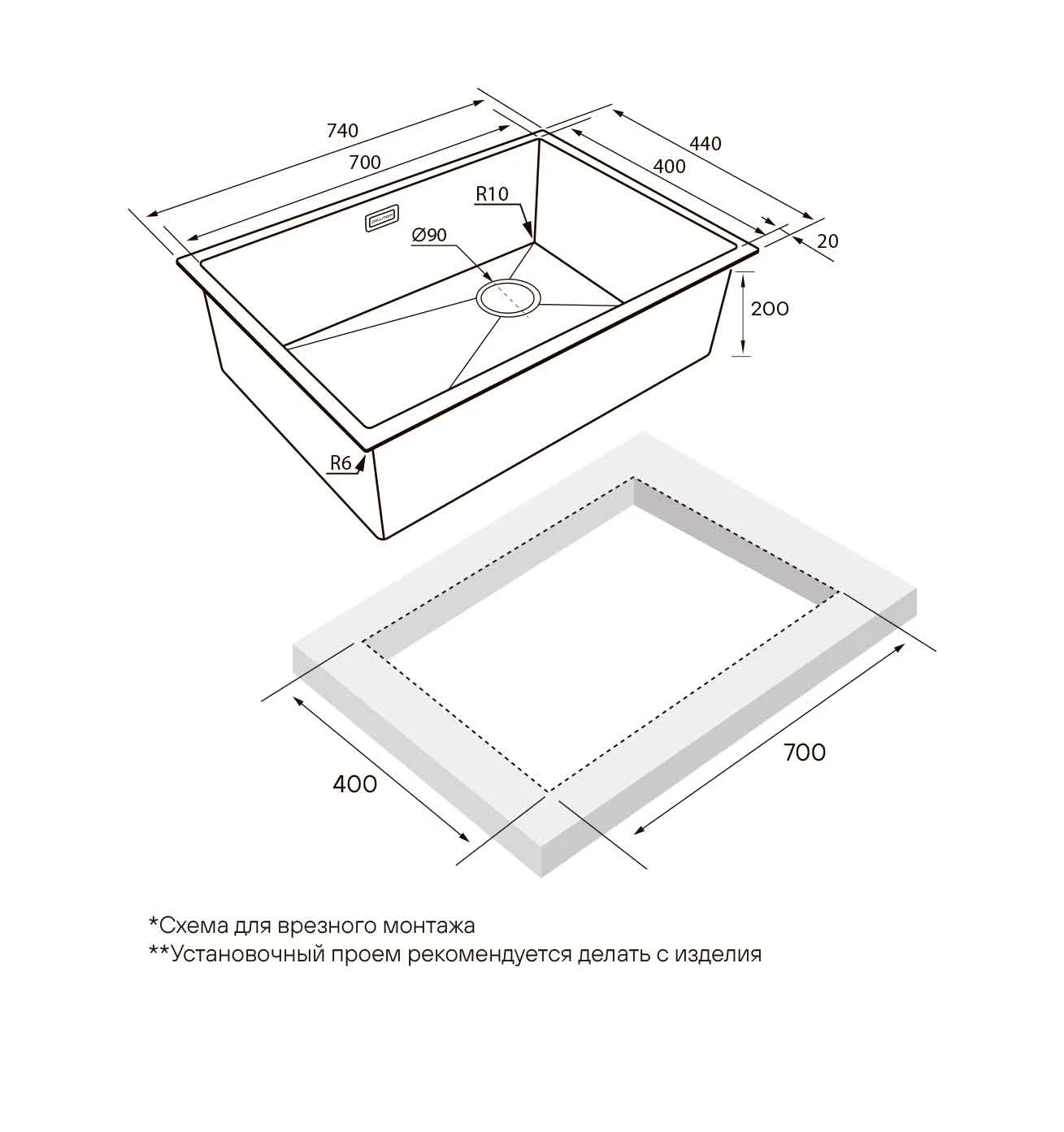 Комплект крепежей для подстольного монтажа, Комплект для врезного монтажа, Отводная арматура (слив-перелив), Декоративная накладная на сливное отверстие, Сифон бутылочного типа с подключением посудомоечной машины (ПММ).