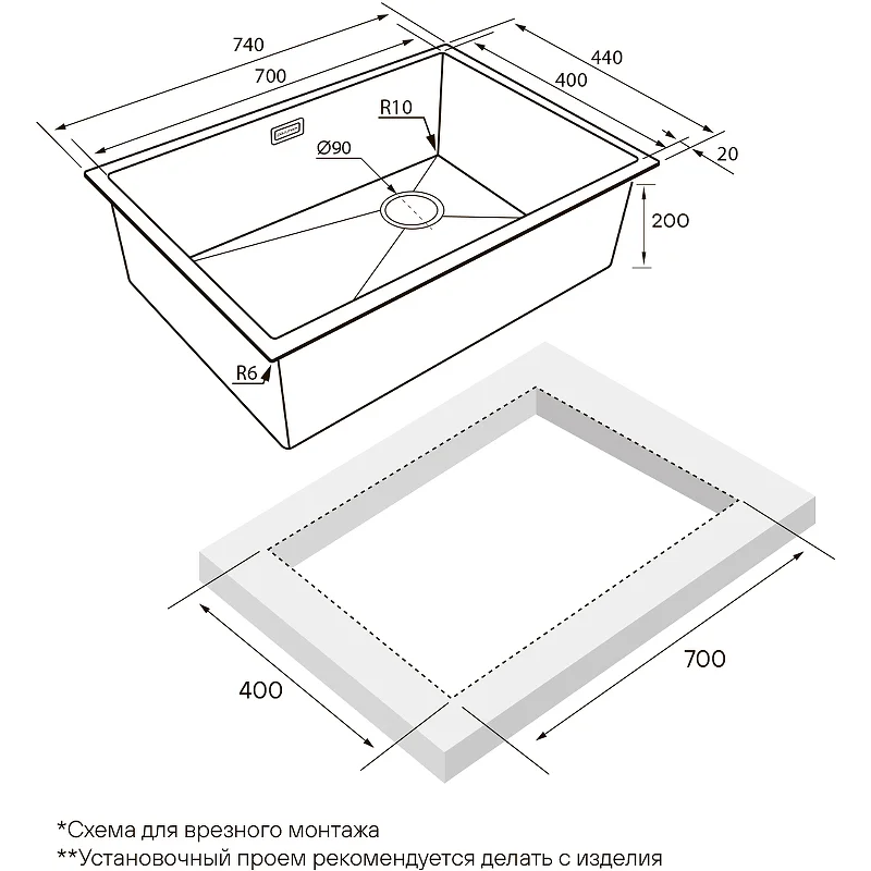 Комплект крепежей для подстольного монтажа, Комплект для врезного монтажа, Отводная арматура (слив-перелив), Декоративная накладная на сливное отверстие, Сифон бутылочного типа с подключением посудомоечной машины (ПММ).