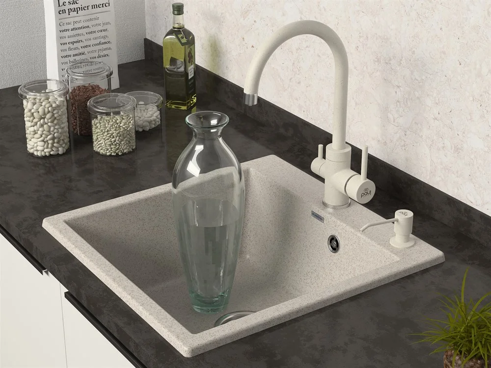 Кварцевая мойка для кухни Paulmark. Высокая прочность, устойчивость к царапинам, гладкая поверхность без пор, долговечность, безопасность и экологичность.