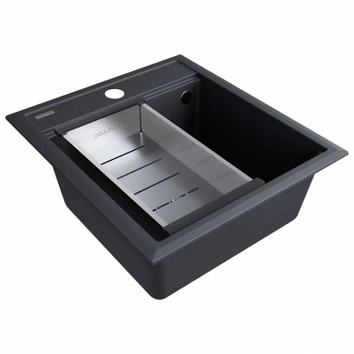 Коландер «ADVANCE», Декоративная накладка на слив в цвете брашированная нержавеющая сталь, Комплект крепежа для врезного монтажа, Отводная арматура (слив-перелив), S-образный телескопический сифон с подключением посудомоечной машины (ПММ)