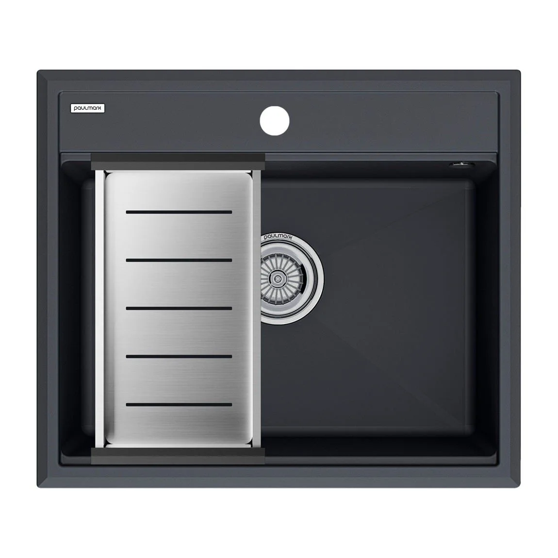 Коландер «ADVANCE», Декоративная накладка на слив в цвете брашированная нержавеющая сталь, Комплект крепежа для врезного монтажа, Отводная арматура (слив-перелив), S-образный телескопический сифон с подключением посудомоечной машины (ПММ)
