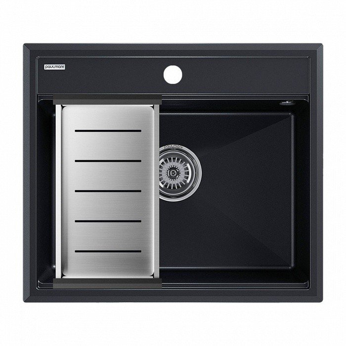Коландер «ADVANCE», Декоративная накладка на слив в цвете брашированная нержавеющая сталь, Комплект крепежа для врезного монтажа, Отводная арматура (слив-перелив), S-образный телескопический сифон с подключением посудомоечной машины (ПММ)