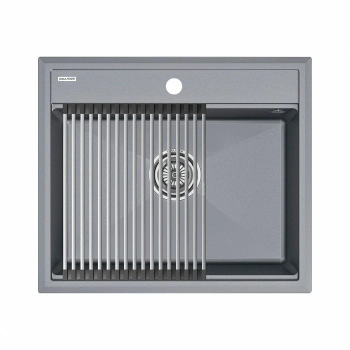 Ролл-мат «STEP», Декоративная накладка на слив в цвете брашированная нержавеющая сталь, Комплект крепежа для врезного монтажа, Отводная арматура (слив-перелив), S-образный телескопический сифон с подключением посудомоечной машины (ПММ), Декоративная накладка на перелив
