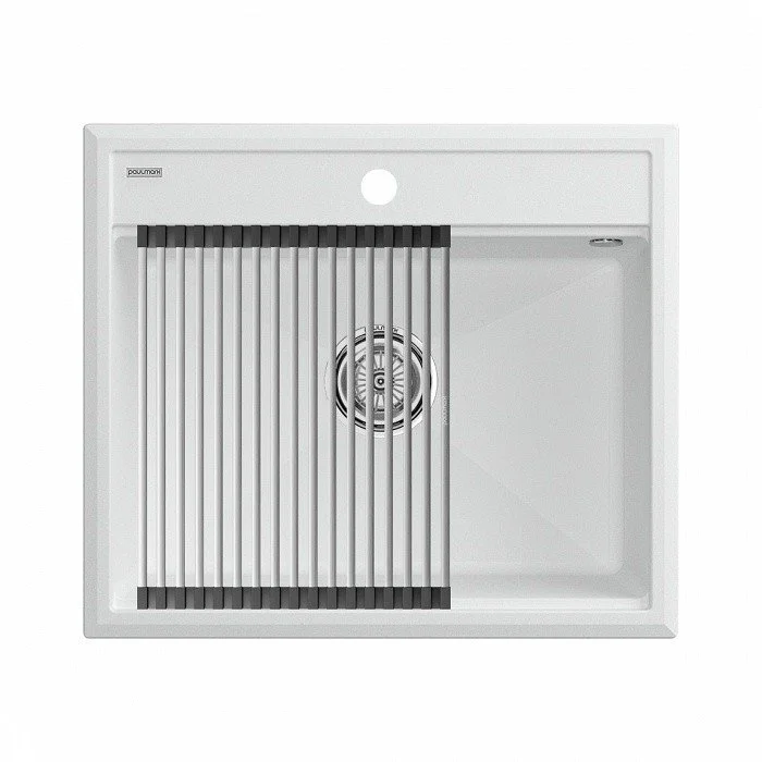 Ролл-мат «STEP», Декоративная накладка на слив в цвете брашированная нержавеющая сталь, Комплект крепежа для врезного монтажа, Отводная арматура (слив-перелив), S-образный телескопический сифон с подключением посудомоечной машины (ПММ), Декоративная накладка на перелив