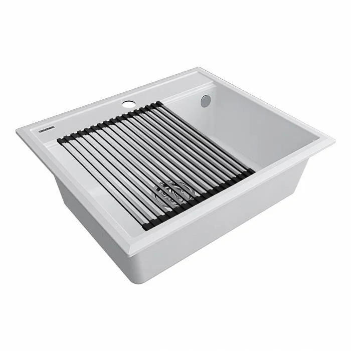 Ролл-мат «STEP», Декоративная накладка на слив в цвете брашированная нержавеющая сталь, Комплект крепежа для врезного монтажа, Отводная арматура (слив-перелив), S-образный телескопический сифон с подключением посудомоечной машины (ПММ), Декоративная накладка на перелив
