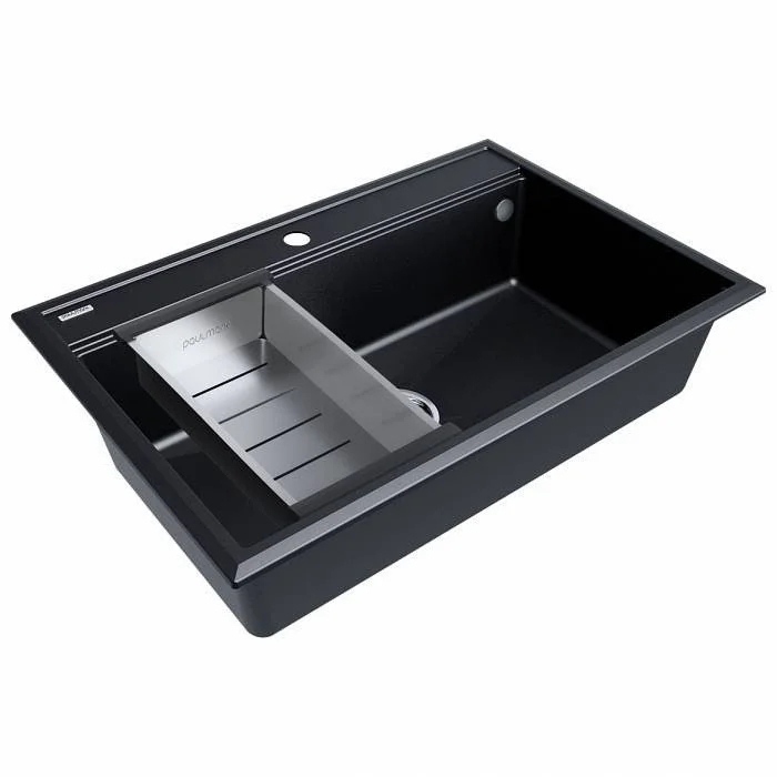 Коландер «ADVANCE», Декоративная накладка на слив в цвете брашированная нержавеющая сталь, Комплект крепежа для врезного монтажа, Отводная арматура (слив-перелив), S-образный телескопический сифон с подключением посудомоечной машины (ПММ)