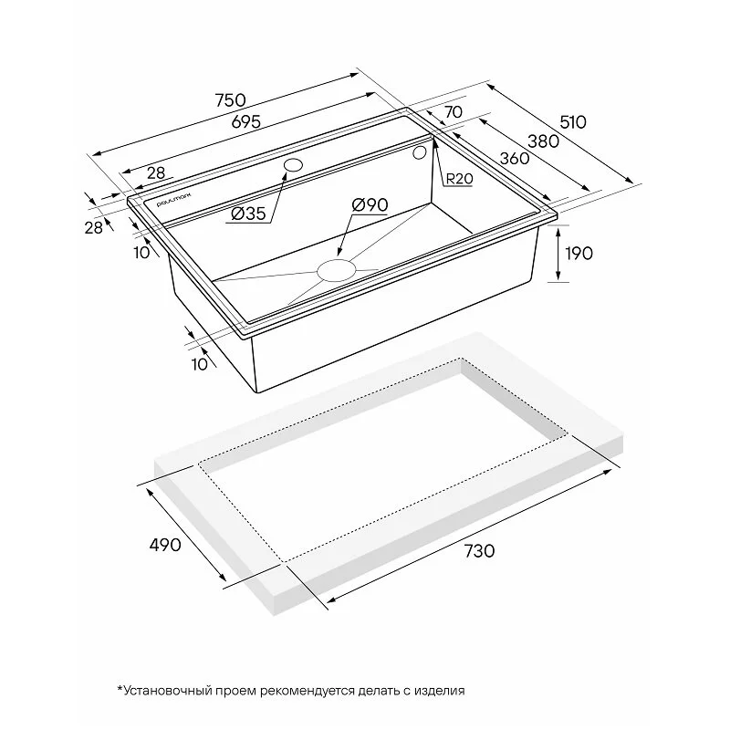Ролл-мат «STEP», Декоративная накладка на слив в цвете брашированная нержавеющая сталь, Комплект крепежа для врезного монтажа, Отводная арматура (слив-перелив), S-образный телескопический сифон с подключением посудомоечной машины (ПММ), Декоративная накладка на перелив