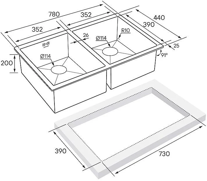 Кухонная мойка Paulmark TWIN PM237844-BS брашированная нержавеющая сталь 780х440мм