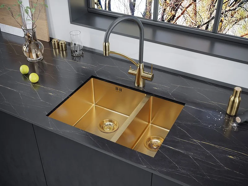 Кухонная мойка Paulmark ZUSAT PM225944-BGL брашированное золото левая PVD 590х440мм