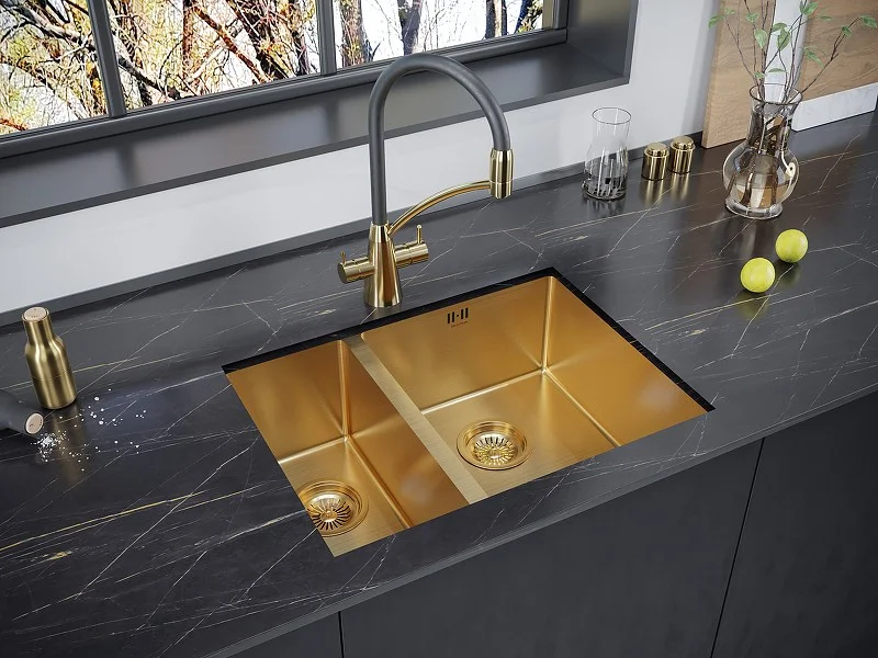 Кухонная мойка Paulmark ZUSAT PM225944-BGR брашированное золото правая PVD 590х440мм