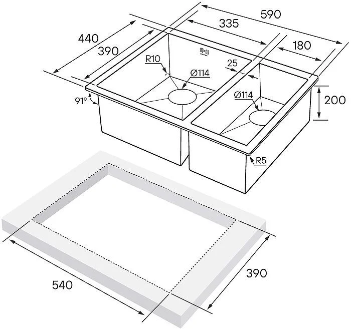 Кухонная мойка Paulmark ZUSAT PM225944-GML вороненая сталь левая PVD 590х440мм