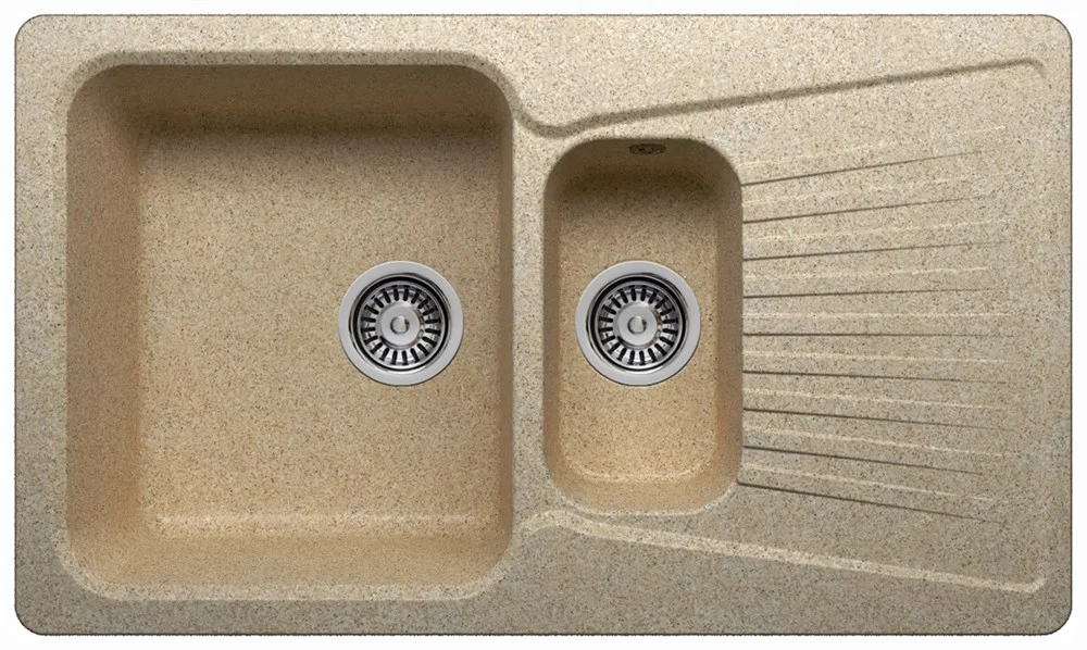 Кухонная мойка POLYGRAN F-18 обладает внушительными габаритами и стильным, практичным дизайном. Эта мойка найдет свое применение в тех домах, где не любят стеснения – в просторной чаше можно свободно разместить несколько кастрюль, не говоря уже о тарелках и прочих предметах побольше. Особенно актуальная модель для больших семей, где после каждого приема пищи остается много грязной посуды. Если вас смущают слишком большие размеры, вспомните, что вместе с мойкой вы можете приобрести разделочные доски, которые удобно размещаются поверх самой чаши – таким образом вы сэкономите место на столешнице. Купить мойку из искусственного камня выгодно еще потому, что она очень долговечная и даже через 10 лет будет выглядеть как новая.