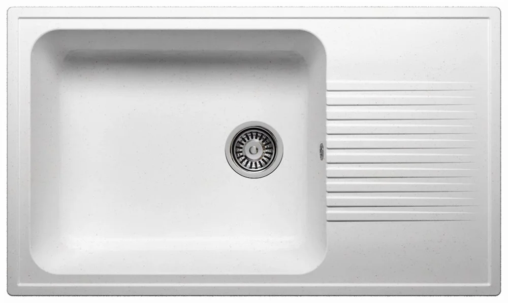 Кухонная мойка POLYGRAN F-19 обладает внушительными габаритами и стильным, практичным дизайном. Эта мойка найдет свое применение в тех домах, где не любят стеснения – в просторной чаше можно свободно разместить несколько кастрюль, не говоря уже о тарелках и прочих предметах побольше. Особенно актуальная модель для больших семей, где после каждого приема пищи остается много грязной посуды. Если вас смущают слишком большие размеры, вспомните, что вместе с мойкой вы можете приобрести разделочные доски, которые удобно размещаются поверх самой чаши – таким образом вы сэкономите место на столешнице. Купить мойку из искусственного камня выгодно еще потому, что она очень долговечная и даже через 10 лет будет выглядеть как новая.
