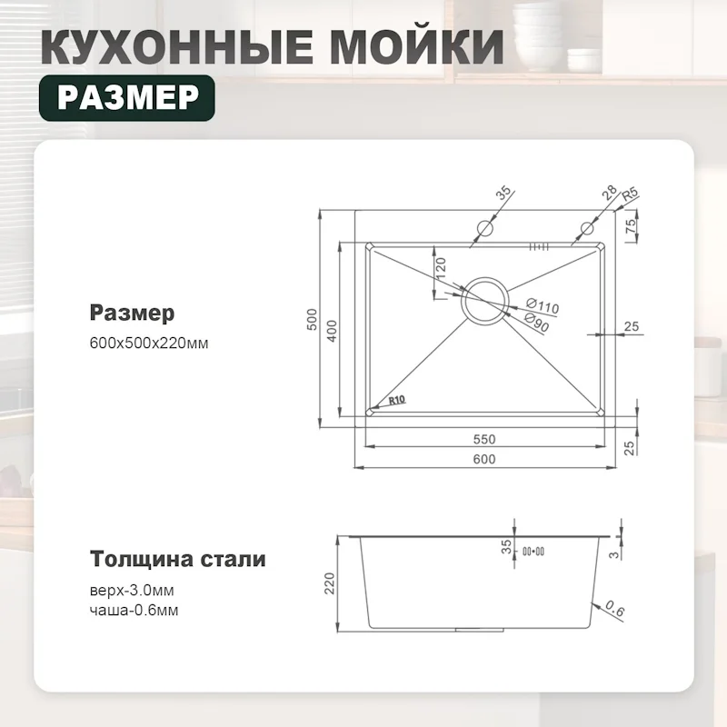 • Тип монтажа: врезной / в один уровень со столешницей