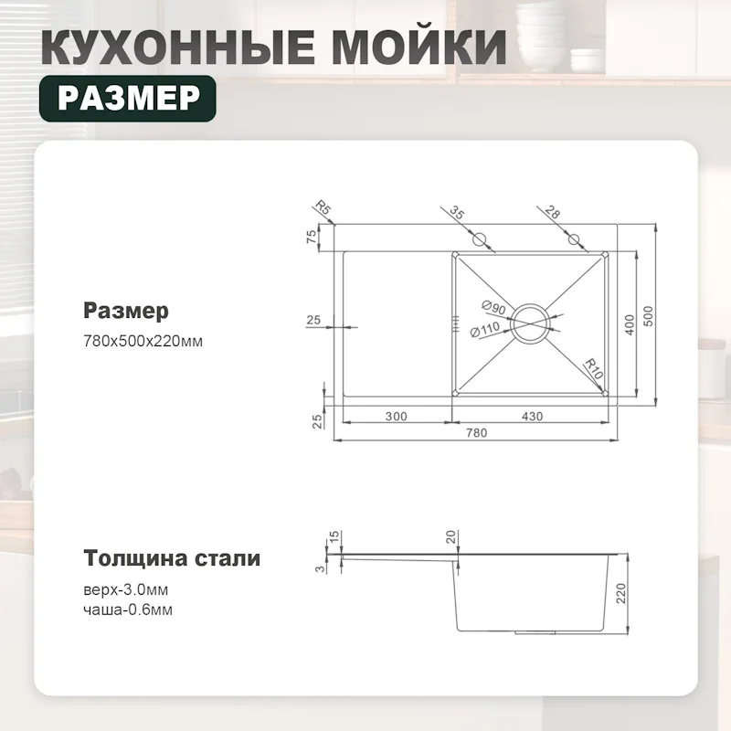 • Количество готовых отверстий: 2 (35мм/28мм)