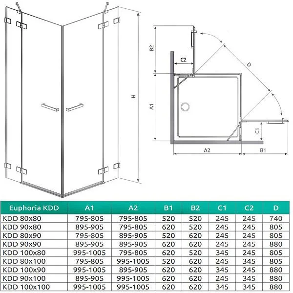 Левая часть душевой кабины Radaway Euphoria 383061-01L 80 см L
