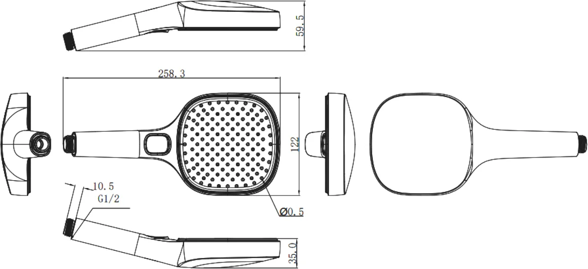 Лейка душевая Raglo R450.51.06 3-х режимная квадратная пластик/силикон, черный