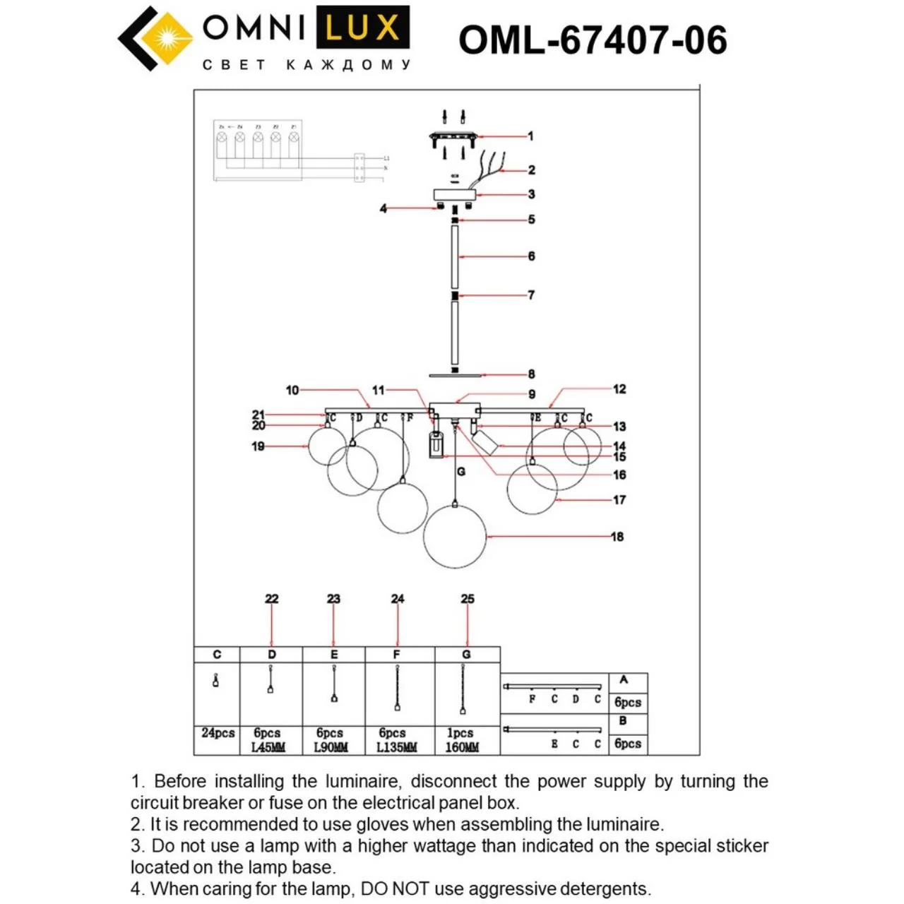 Высота светильника без подвеса, мм