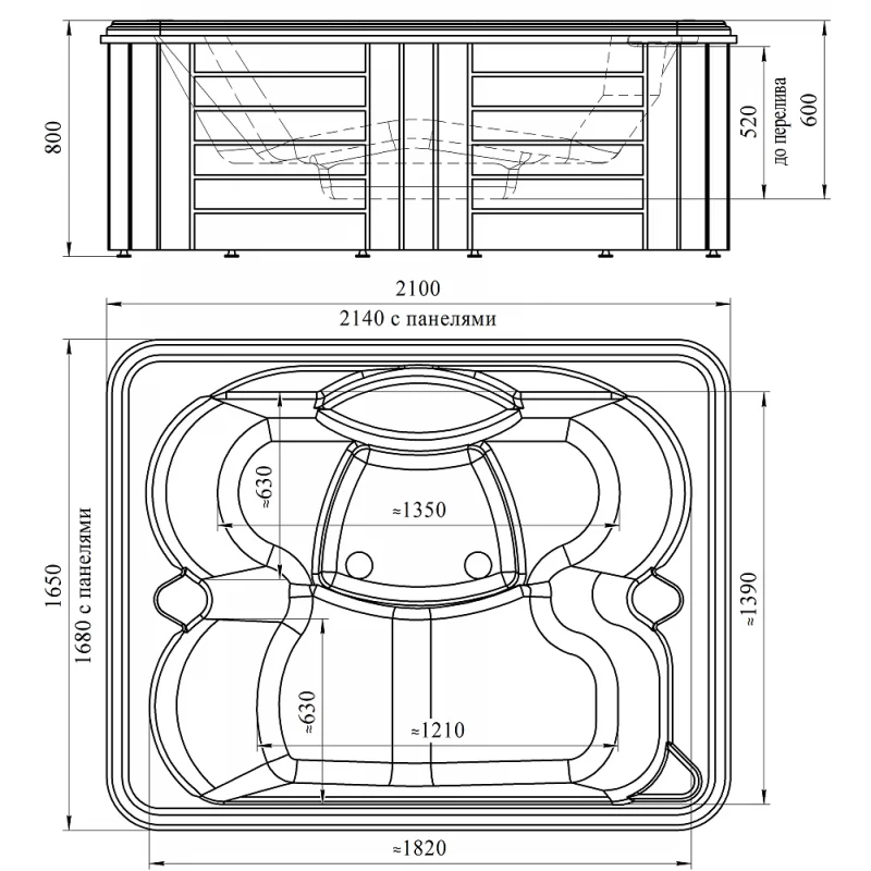 Мини бассейн Radomir Делюкс 1-30-0-0-4-053Б белый, Gold, 2140х1680, рама-подставка, система слива, подголовники 3 шт., 27 гидромассажных форсунок, пневмокнопка 2 шт., регулятор воздуха 2 шт.