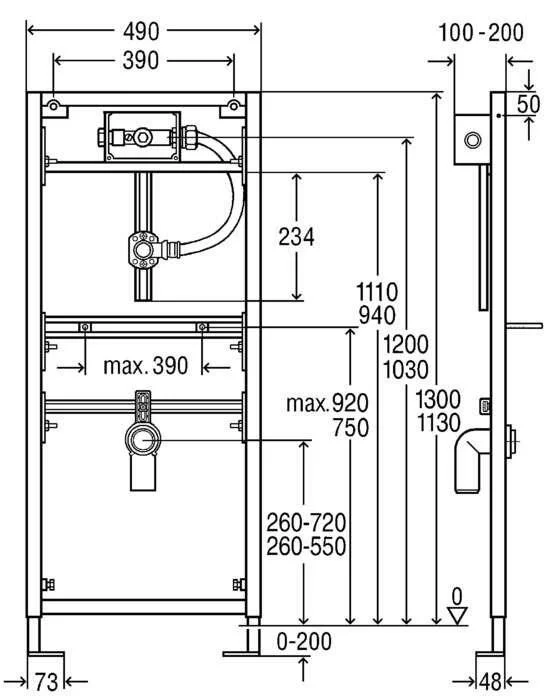 Примечание (модель) Макс. высота подачи воды для писсуара от уровня чистого пола 880 мм!