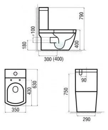 Унитаз напольный 050 черный (без сиденья) 050 black HXY моноблок