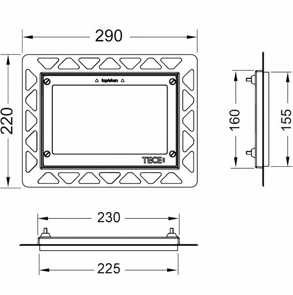 Монтажная рамка для кнопки смыва TECE TECEsquare для установки стеклянных панелей ширина мм-290 высо