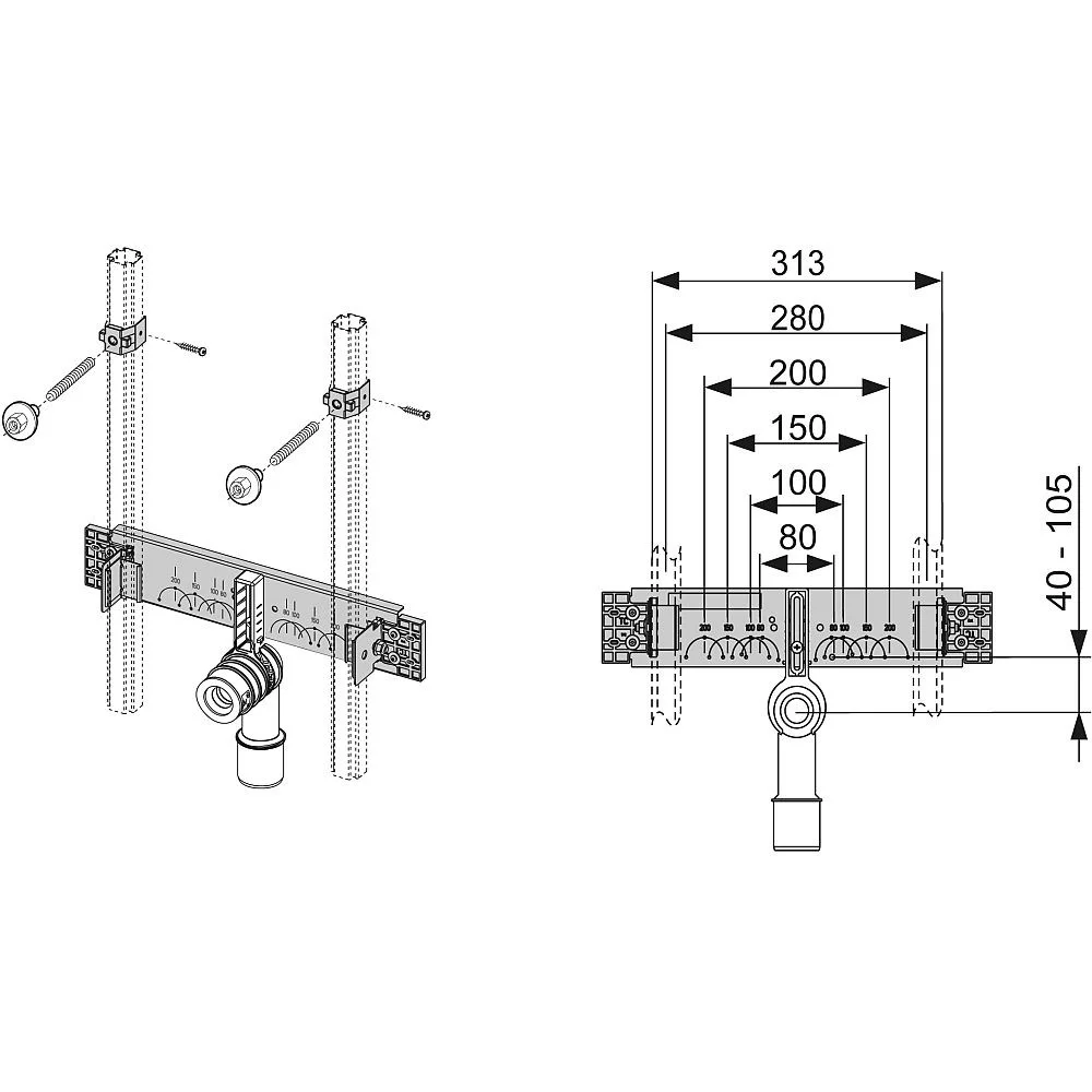 Монтажный набор для установки раковины TECE profil набор из: установочная пластина с креплениями фан